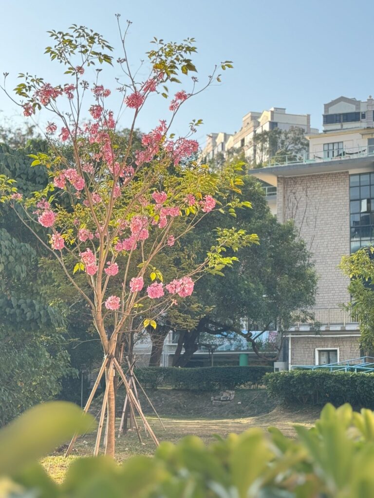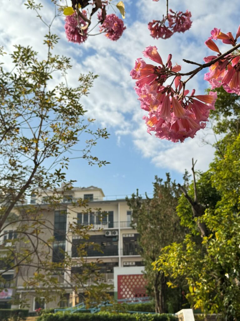 Since 2023, our first-ever group planting initiative has taken root: Tabebuia rosea (紅花風鈴木) alongside Tabebuia chrysantha (黃花風鈴木) – a shared act of care that feels almost destined to blossom by nature. Tabebuia rosea arrives as a soft pink prelude to beauty; Tabebuia chrysantha follows in bright splendour, as if summer briefly found a richer colour. When their moment comes, each tree blooms with vivid confidence, adding vibrant colours to our verdant campus.